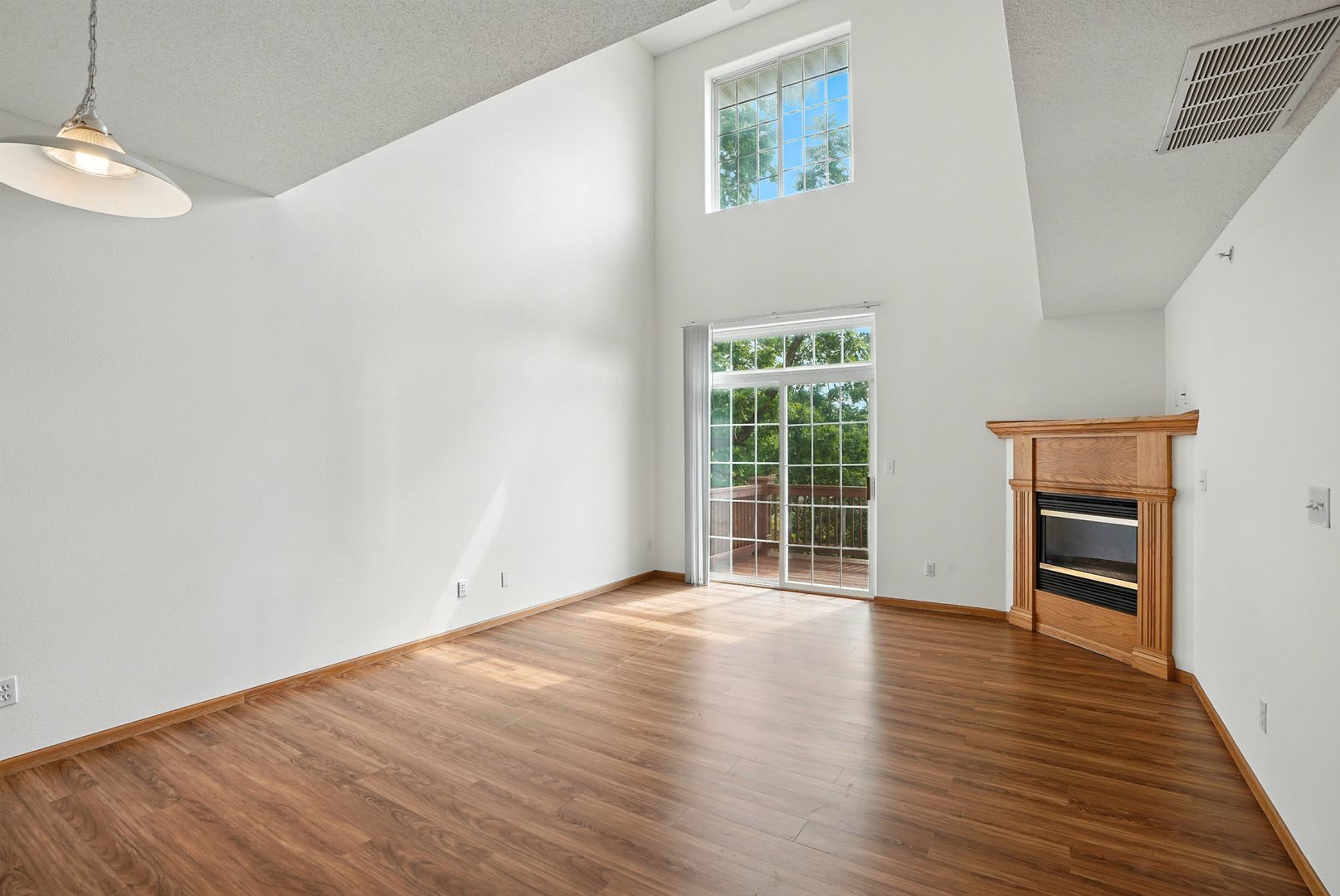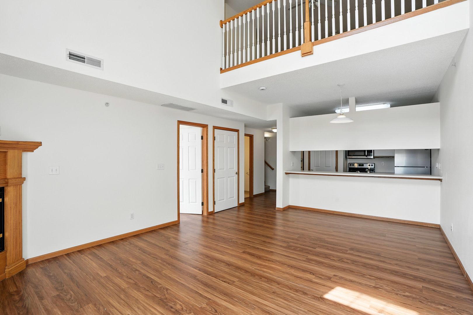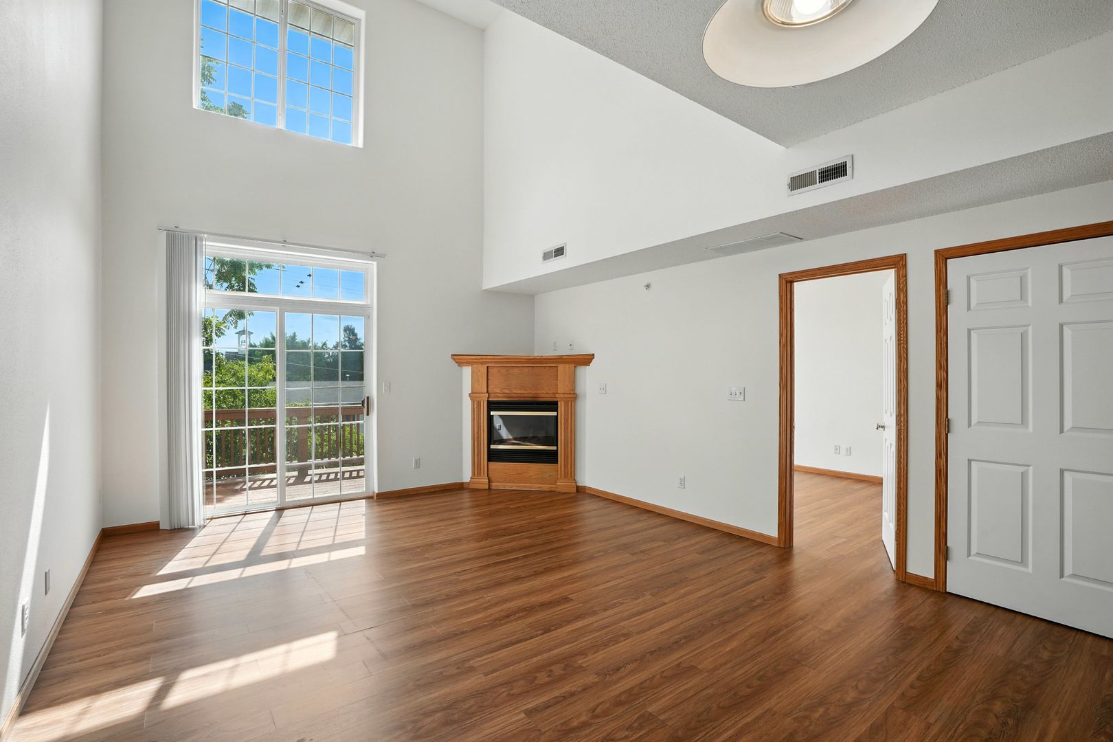 Located on the top floor of the Autumn Ridge building at 420 5th Street, this 2 bedroom + spacious loft, 1.5-bath condo offers 1362 sq. ft. of open concept living with a modern twist. The layout features one bedroom on each level and a massive loft space upstairs - perfect for a second living room, home office, or both. The two-story living room is filled with natural light thanks to oversized windows that stretch toward the ceiling - plus a cozy gas fireplace and stylish wood-style flooring that make the space both grand and welcoming.