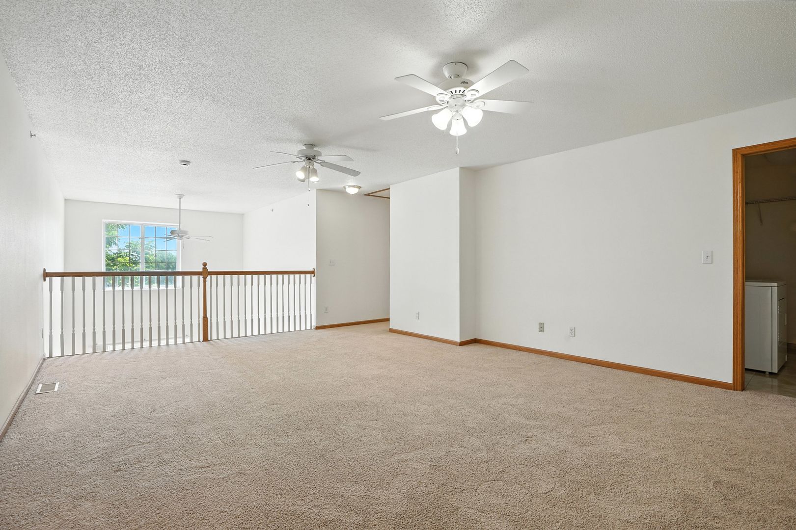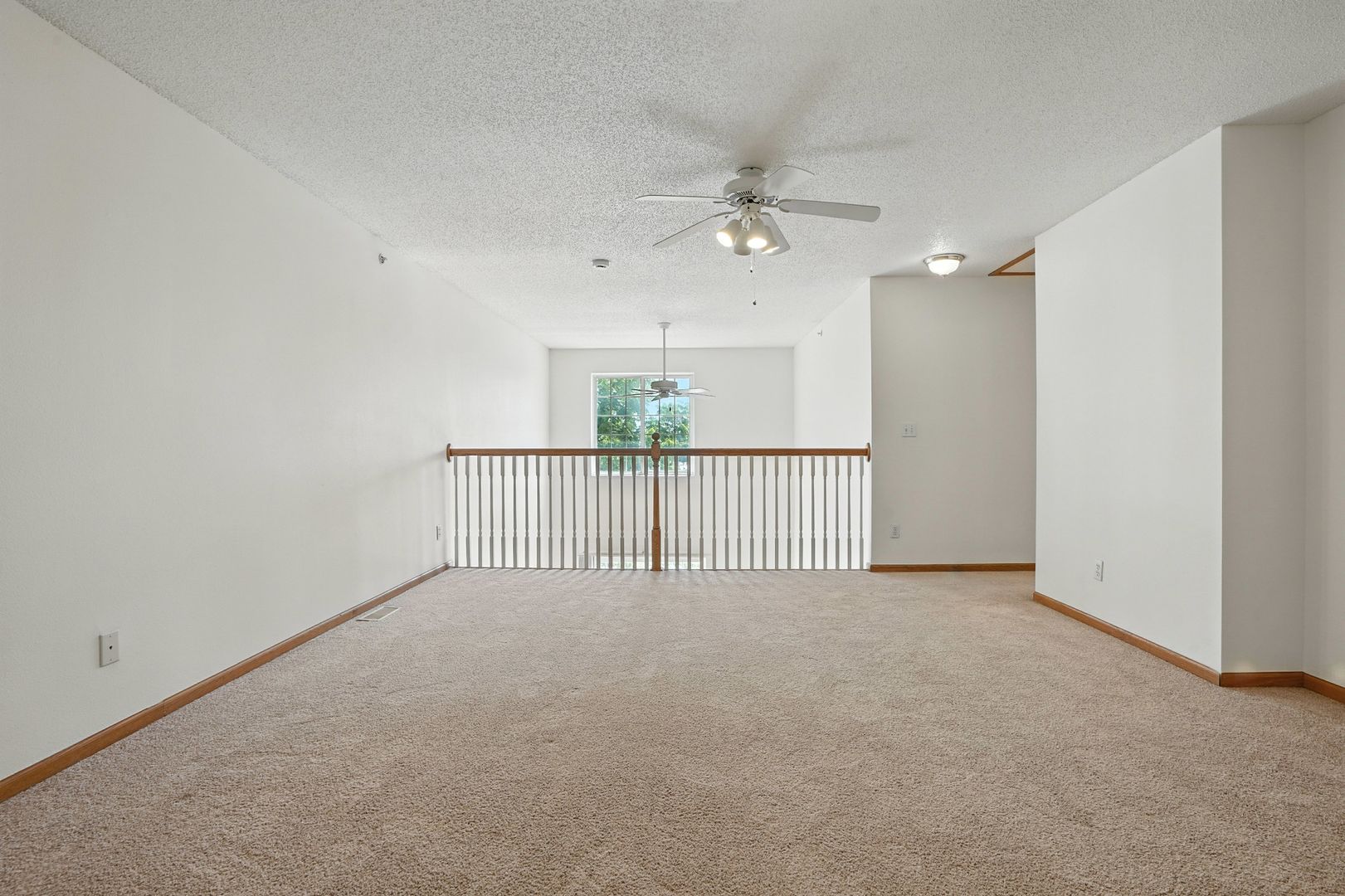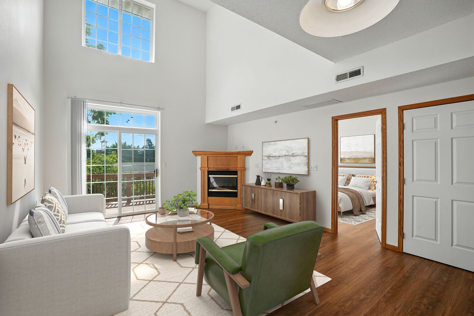 Located on the top floor of the Autumn Ridge building at 420 5th Street, this 2 bedroom + spacious loft, 1.5-bath condo offers 1362 sq. ft. of open concept living with a modern twist. The layout features one bedroom on each level and a massive loft space upstairs - perfect for a second living room, home office, or both. The two-story living room is filled with natural light thanks to oversized windows that stretch toward the ceiling - plus a cozy gas fireplace and stylish wood-style flooring that make the space both grand and welcoming.