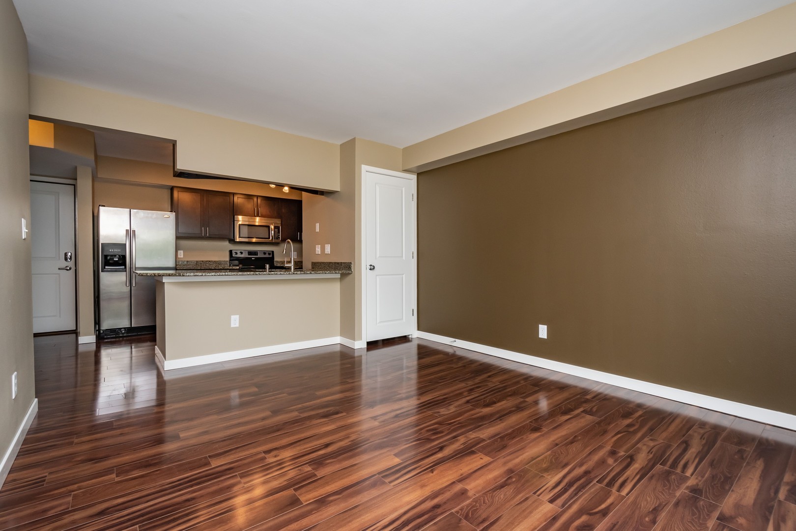 Our 2BR, 1 bath Oakcrest units have a modern feel and upscale finishes. These units feature gorgeous laminate hardwood floors in the main living area, stainless steel appliances, beautiful espresso colored cabinetry, granite counter tops, new washer & dryer in 2025, balcony, ceramic tile floors in the bathrooms, ceiling fans and window treatments! Each unit includes one parking stall in the common garage with a bike rack in each stall. This building has an elevator and additional outdoor parking available if needed. This is a top floor unit. This unit received new HVAC in 2024.