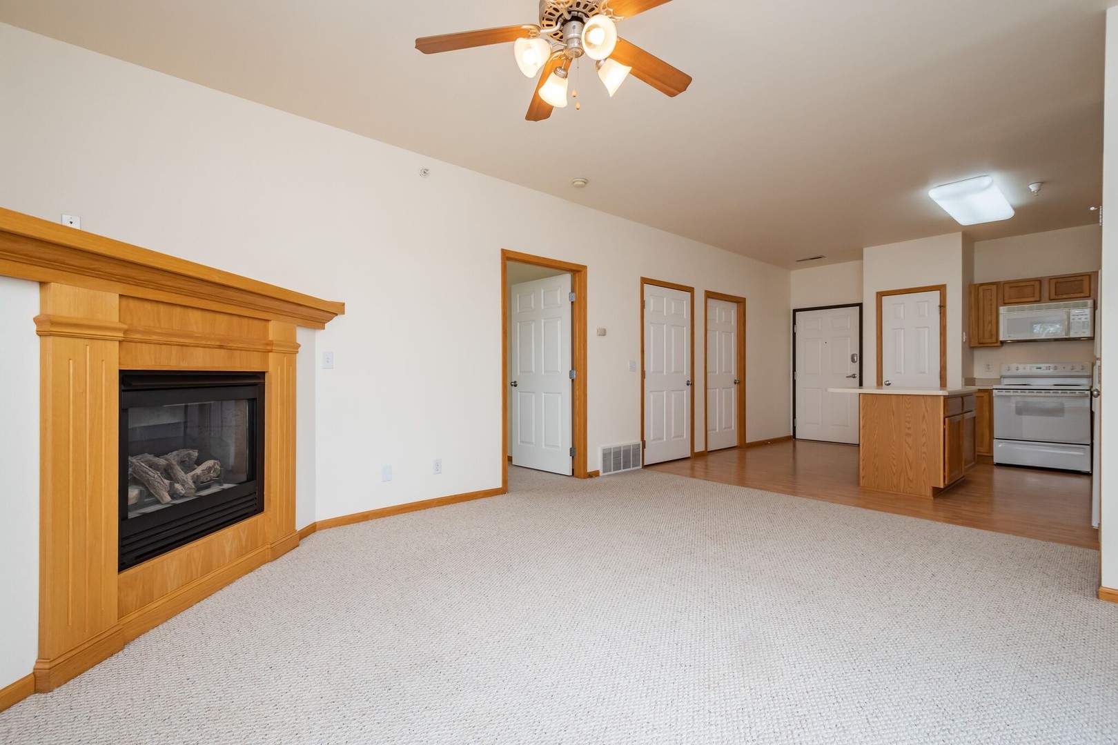 Nine-Foot Ceilings and Ceiling Fans for an open, airy feel