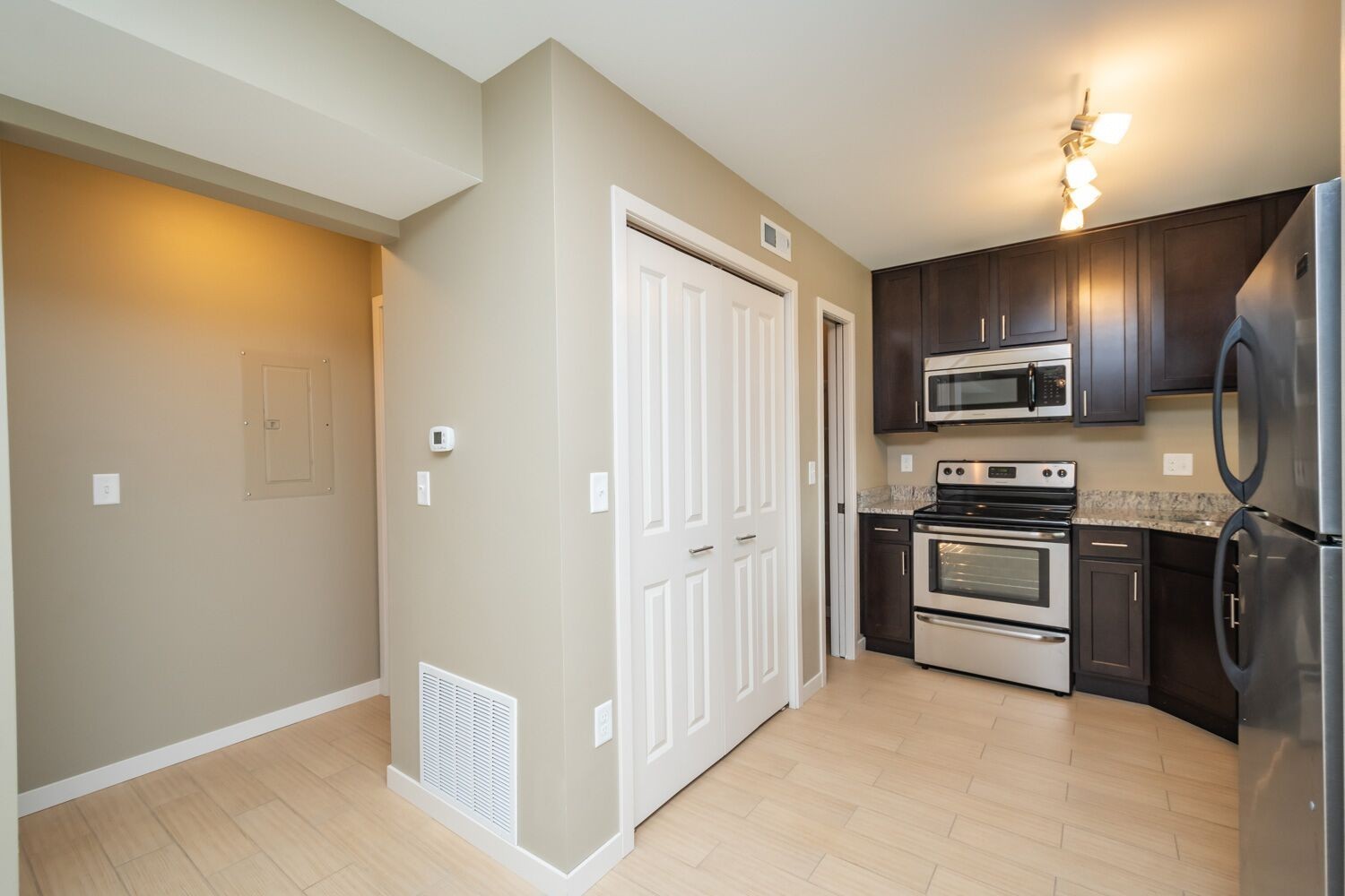 River Ridge Place is a charming, pet friendly community in Coralville, IA! This 572 SF 1BR unit features beautiful granite counter tops, espresso colored cabinetry, stainless steel appliances, ceramic tile floors, washer/dryer, deck, free outdoor parking and options for 1 GIG fiber optics internet. This is a second-floor end unit in the courtyard.