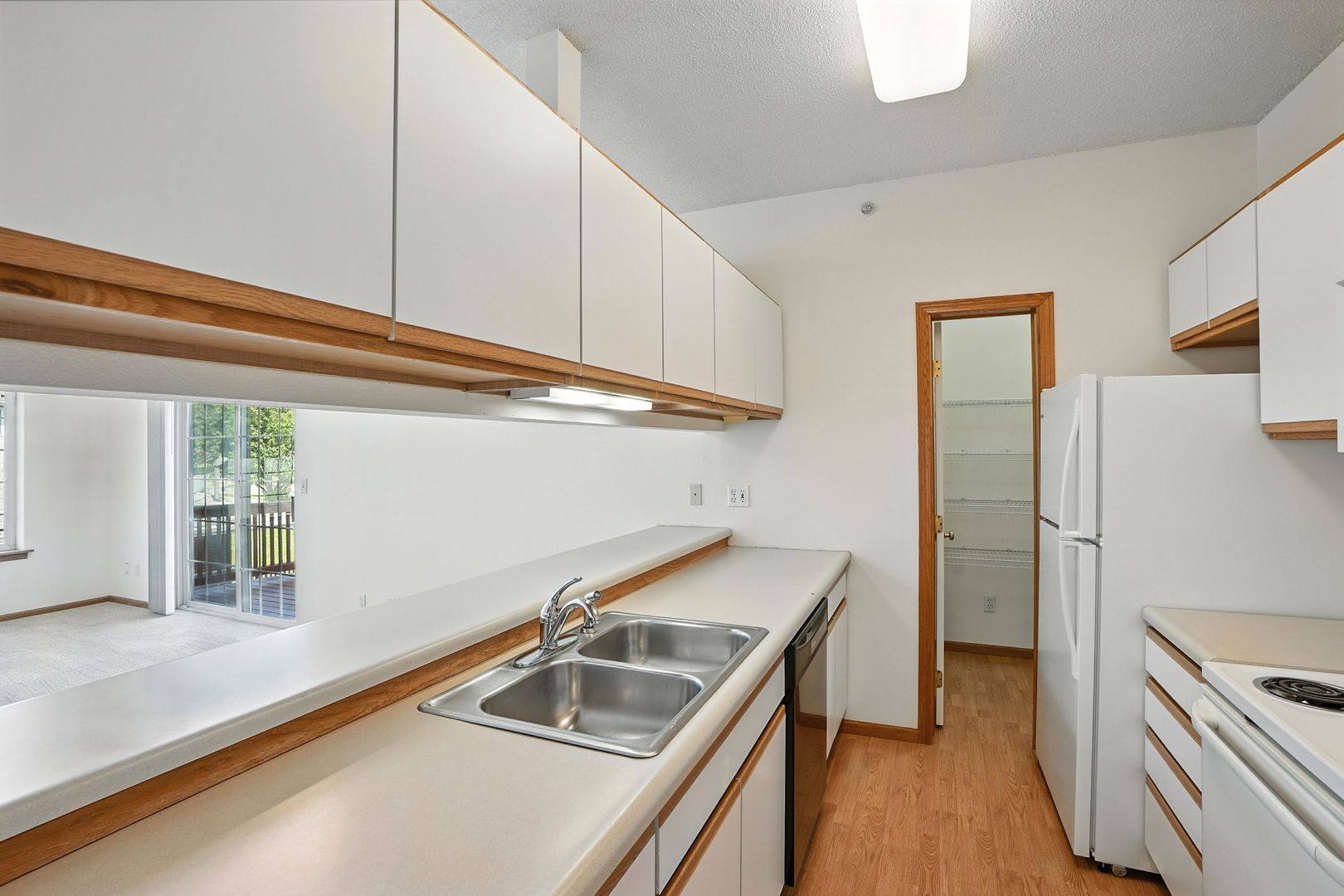 This unique two-level condo has 3 large bedrooms, 2.5 bathrooms, a cozy gas fireplace, all appliances, a large breakfast bar, a walk-in pantry, a huge balcony, ceiling fans, window treatments, spacious closets, a laundry room with built in shelving and it also includes a one car garage stall.
