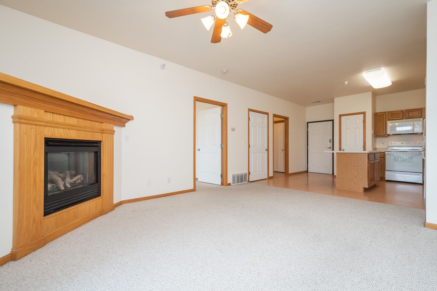 Check out this spectacular 1 bedroom, 1 bathroom condo that is LOADED with everything! This spacious condo features a gas fireplace in the living room, a large balcony, roomy bathroom, all appliances including washer & dryer, a center island breakfast bar, 9' ceilings, ceiling fans, and large walk-in closet, and a pantry.