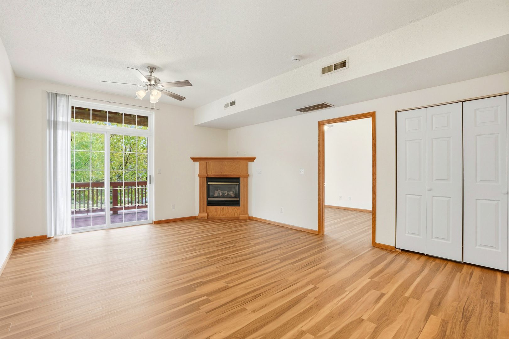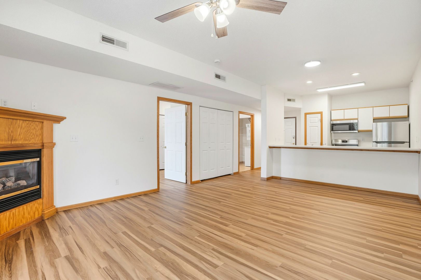 This spacious 1-bedroom condo includes a cozy gas fireplace, new stainless steel refrigerator, stove, and microwave, plus a stainless steel dishwasher (2020). The home also features an in-unit washer & dryer, large breakfast bar, huge private balcony with access from both the living room and bedroom, ceiling fans, pantry, central air conditioning, and a spacious bedroom closet.