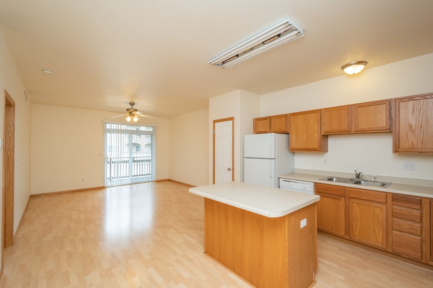 *Laminate hardwood flooring in the kitchen and living area