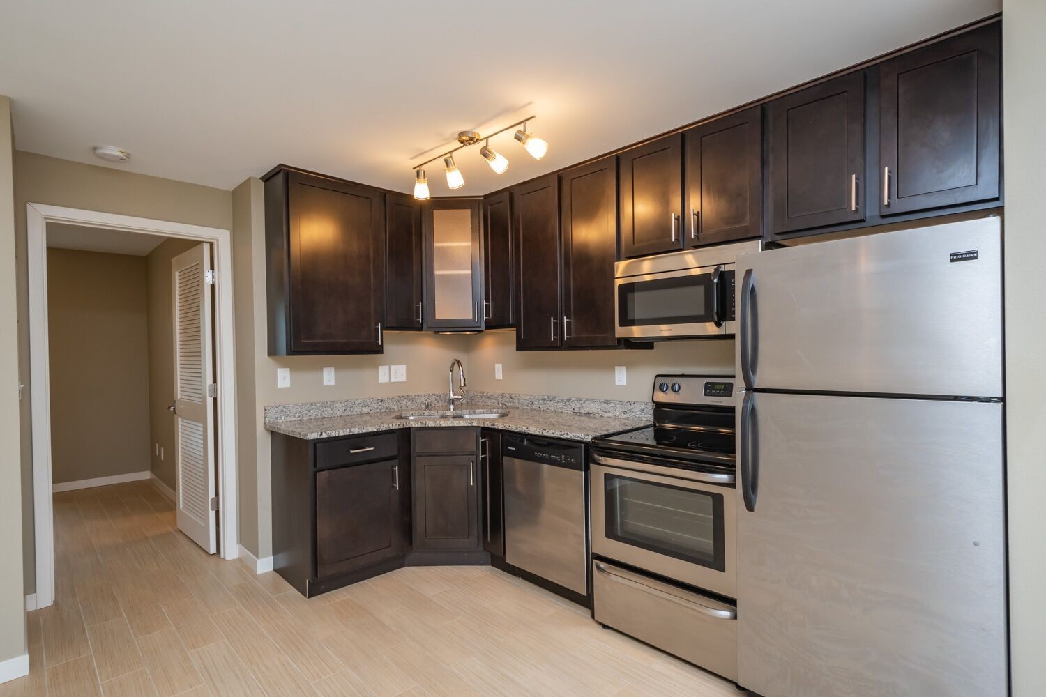 River Ridge Place is a charming, pet friendly community in Coralville, IA! Our 400 SF 1BR units feature beautiful granite counter tops, espresso colored cabinetry, stainless steel appliances including dishwasher, ceramic tile floors, in unit washer/dryer, patio, free outdoor parking and options for 1 GIG fiber optics internet. This is a ground floor unit.