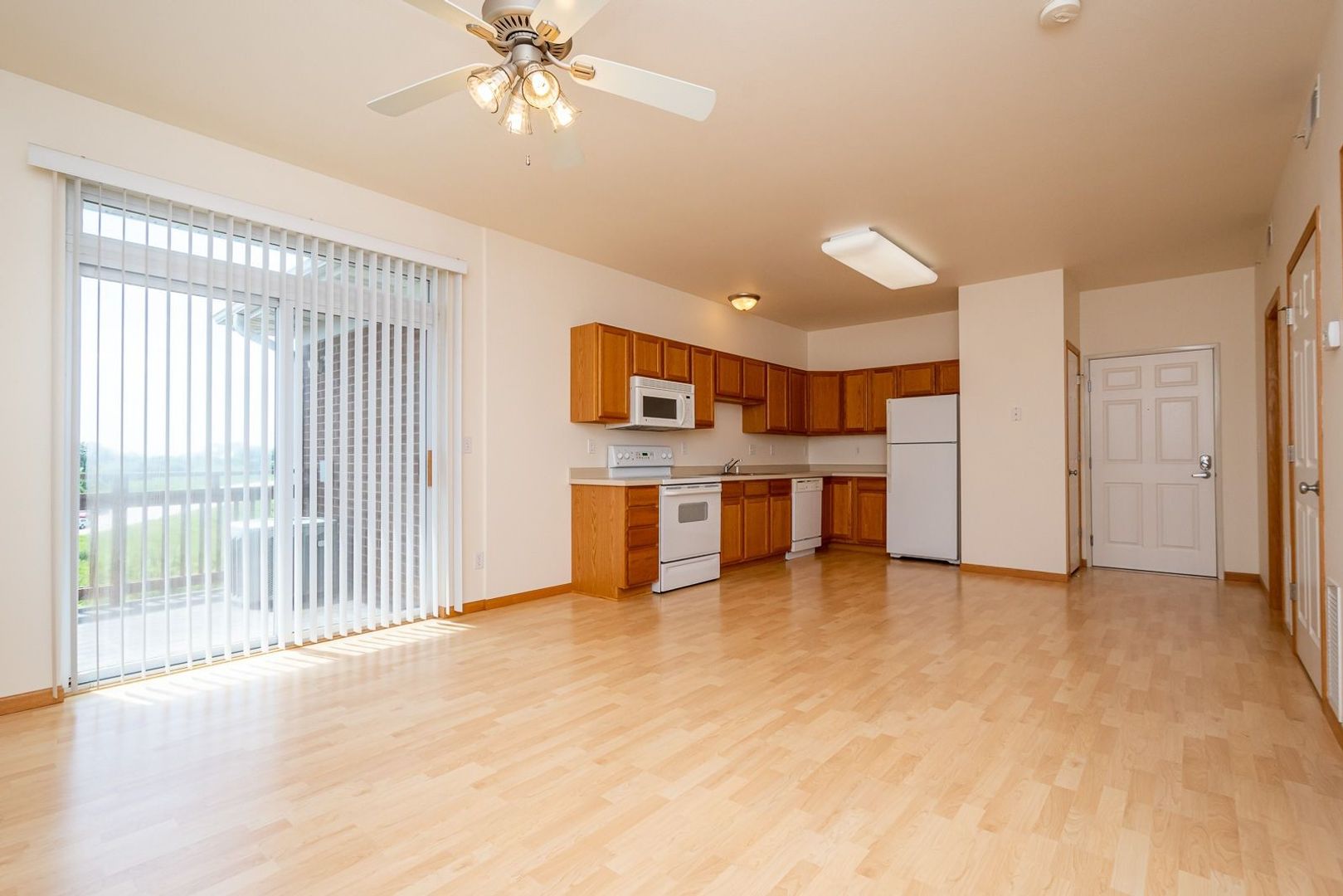 This lovely 1-bedroom condo features beautiful wood floors in the kitchen and living room, all appliances, new in unit washer/dryer purchased in 2023, 9' ceilings, ceiling fans, balcony, free outdoor parking and low utilities! This building is ENERGY-STAR RATED by MidAmerican Energy ($40 - $70/month average for gas & electric)! Our Residents also enjoy free access to our recently renovated on-site fitness center! This is a third-floor unit.