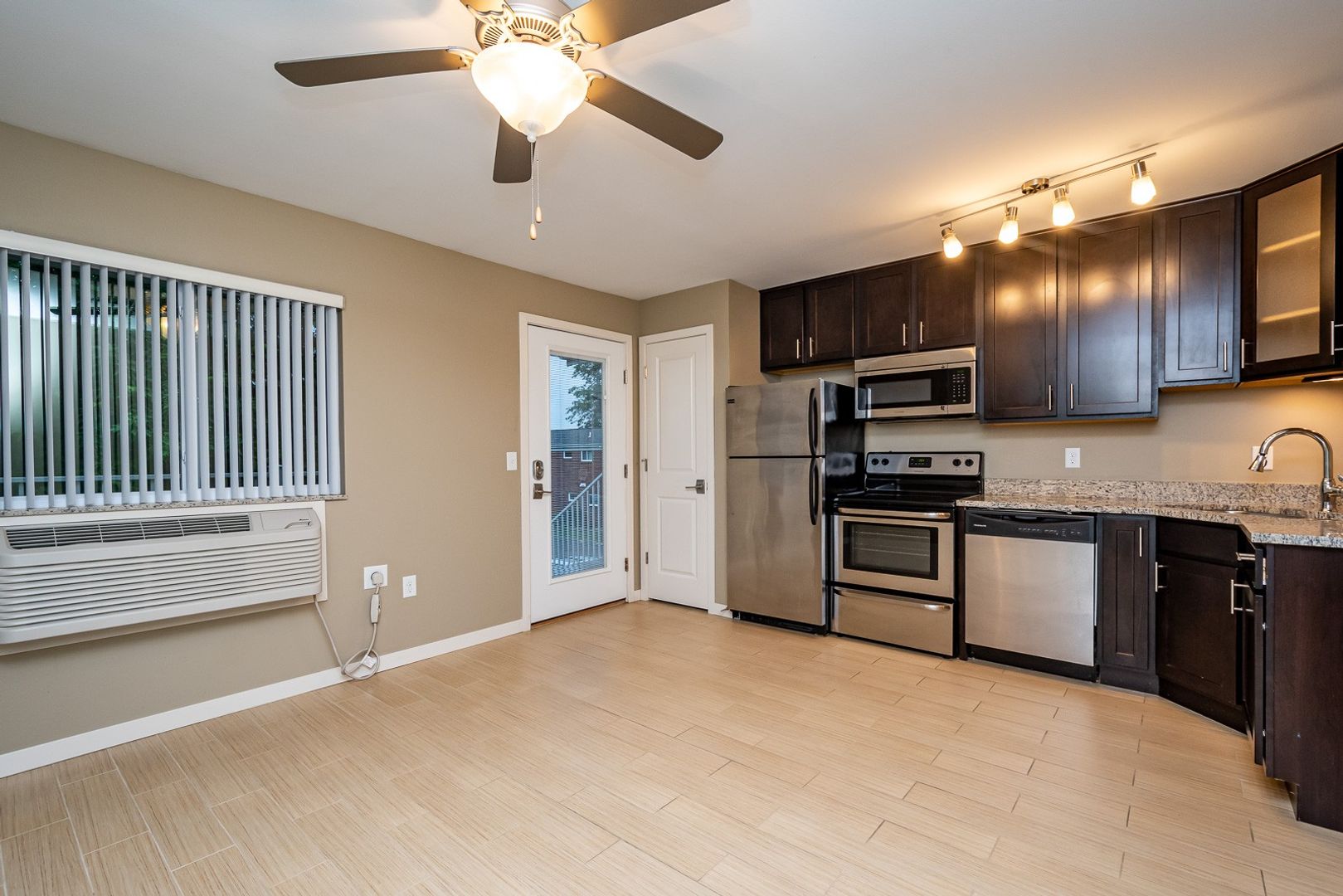 These cozy 400 SF 1-bedroom units are thoughtfully designed and feature beautiful granite countertops, espresso-colored cabinetry, stainless steel appliances, ceramic tile floors, washer & dryer, and a balcony. Residents enjoy free outdoor parking and options for 1 GIG fiber optics internet. This is a second-floor unit.