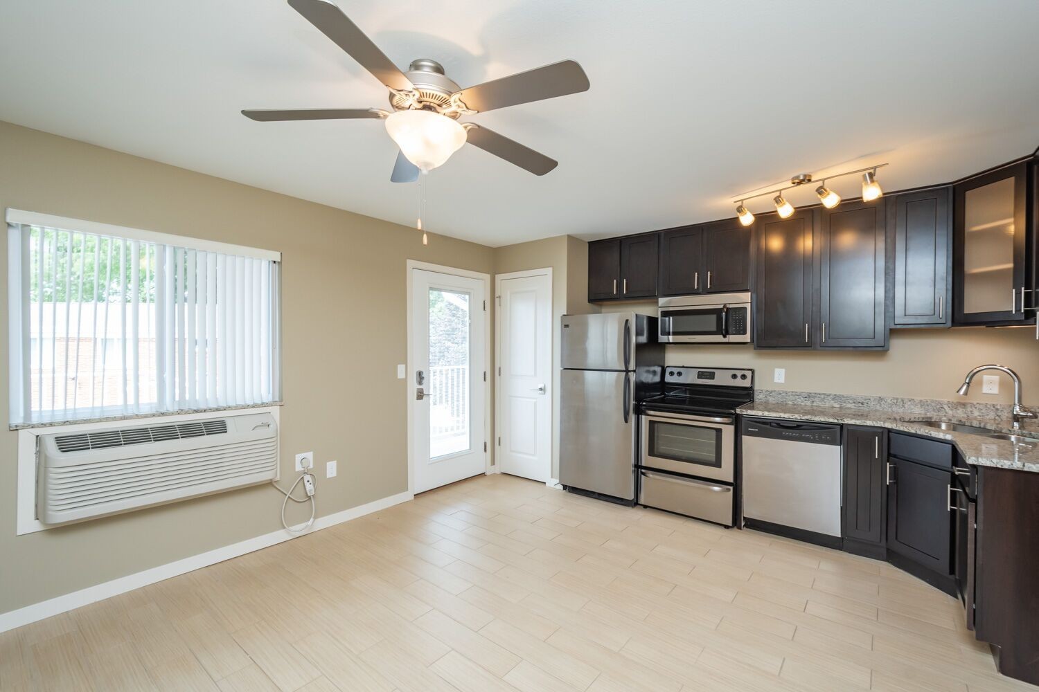 River Ridge Place is a charming community in the heart of Coralville, IA! Our 400 SF 1BR units feature beautiful granite counter tops, espresso colored cabinetry, stainless steel appliances, ceramic tile floors, washer/dryer, patio or balcony, free outdoor parking and options for 1 GIG fiber optics internet. River Ridge is surrounded by beautiful green space with mature trees and has an outdoor swimming pool and dog park for our residents and their pets to enjoy. The City bus stops directly in front of this community so your commute around town is very easy. There are many shops and restaurants within walking distance of this location as well!