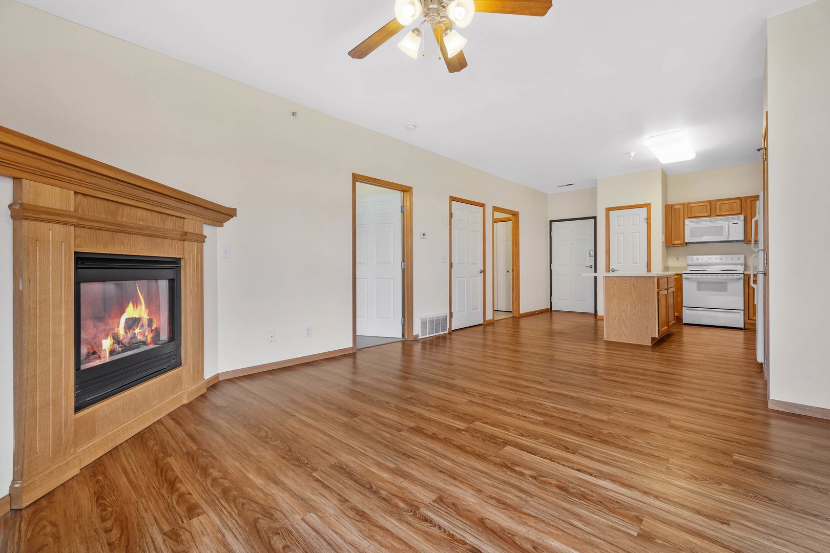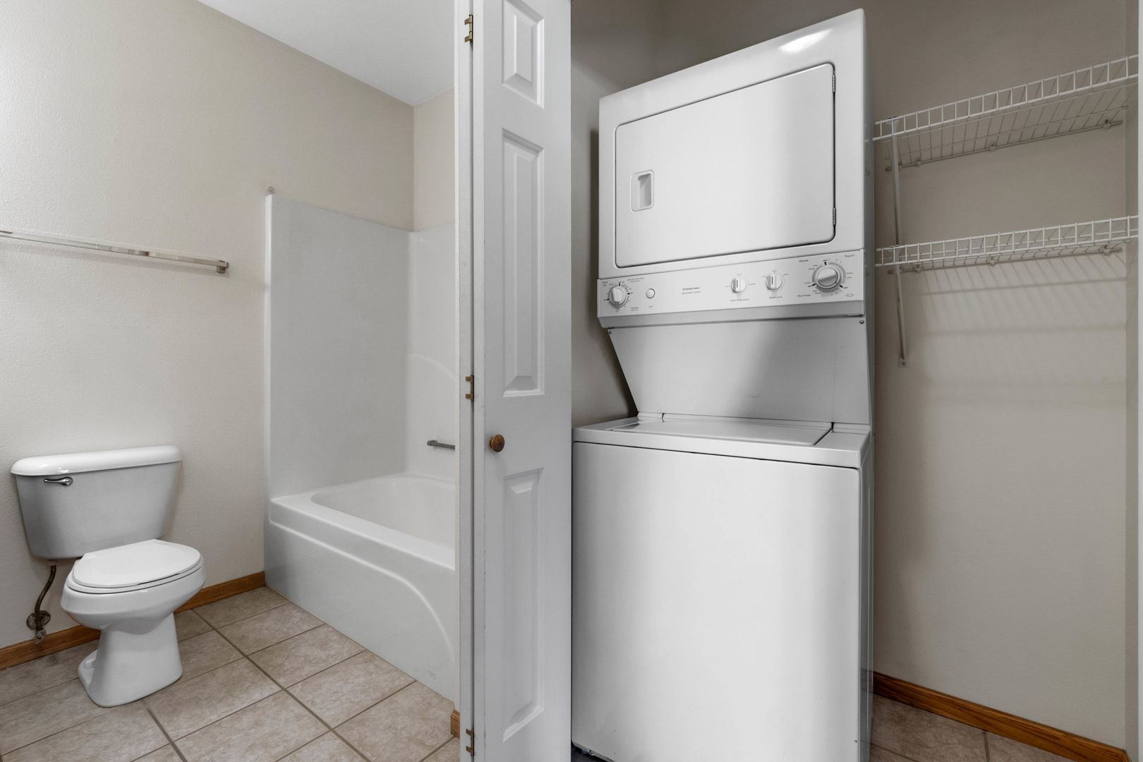 Check out this spectacular 1 bedroom, 1 bathroom condo; LOADED with everything! This spacious condo has a gas fireplace, large balcony, roomy bathroom, all appliances including washer & dryer, a center island breakfast bar, nine foot ceilings, ceiling fans, and a large walk-in closet. Free garage parking for one vehicle is included in the rent. Residents also enjoy our large free fitness center which is located on the first floor of this building! There is an elevator in this building.