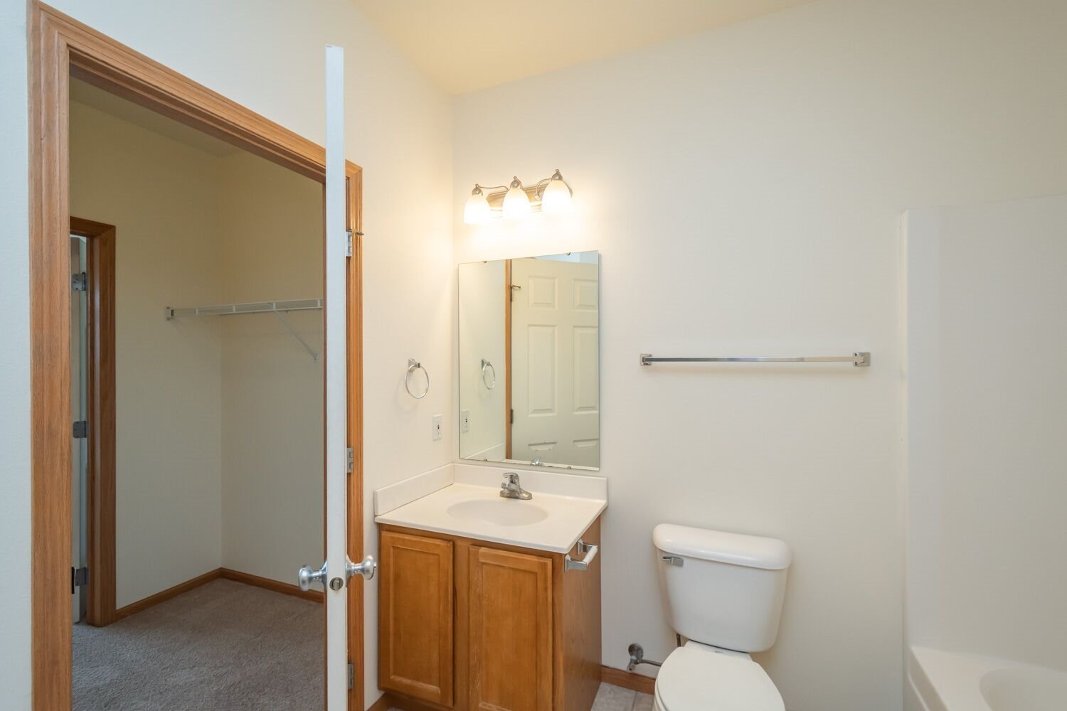 Move into this spectacular 1-bedroom condo that is LOADED with everything! This spacious condo has a gas fireplace, balcony, roomy bathroom, all appliances including dishwasher and in unit washer & dryer, a center island breakfast bar, nine-foot ceilings, ceiling fans, and large walk-in closet, and a 1 car garage stall. Our Residents also enjoy our large fitness center which is located on the first floor of this building! This is a third-floor unit and there is an elevator in this building.
